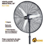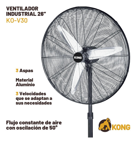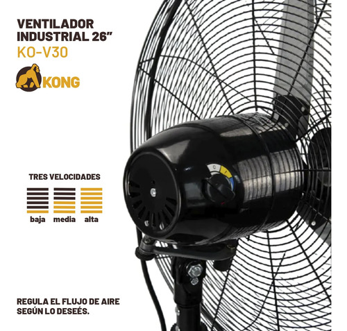 Ventilador industrial potente y constante: Este ventilador de 26 ofrece gran rendimiento con 190W de potencia y 1,000rpm. Ideal como ventilador grande para uso en talleres, almacenes y espacios que requieren ventilación continua.