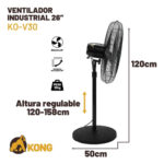 Altura ajustable en ventiladores de piso: Este ventilador de piso puede regularse entre 120 y 150cm, lo que lo convierte en uno de los mejores ventiladores para adaptarse a diferentes Ɣreas con flujo de aire eficiente.