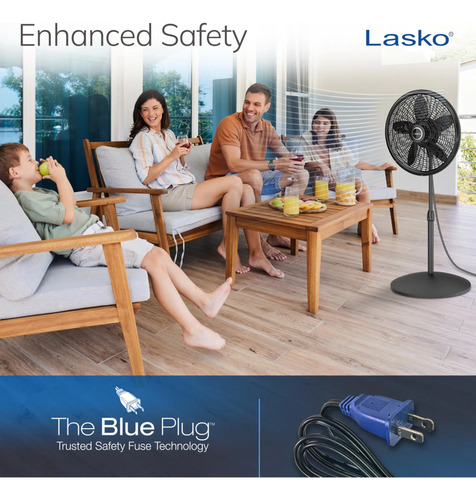 La seguridad es lo primero: este ventilador está listado por ETL y está equipado con la tecnología de fusibles de seguridad de confianza Lasko el enchufe azul está diseñado para cortar corriente eléctrica al ventilador si detecta una falla eléctrica potencialmente peligrosa en el motor o fuente de alimentación