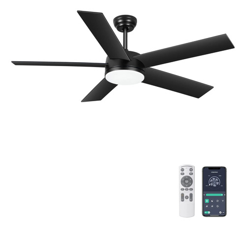 Ohniyou Ventilador de Techo de 52 Pulgadas con Luz y Control Remoto, 6 Velocidades, Luz Regulable, Motor DC Reversible, Ventilador de Gran Volumen Aire para Dormitorio, Patio, Oficina (Negro)