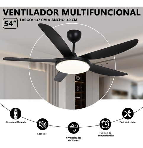 Very PracticalEsta luz del ventilador tiene tres temperaturas de color, ajustando la temperatura de color desde luz blanca fría (6500 K), a neutra (4000 K) y hasta cálida amarilla (3000 K), 6 velocidades de viento y brillo ajustable, que puede satisfacer plenamente sus necesidades de la vida diaria.