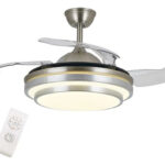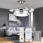 Megaluz F500VL01 Ventilador de techo con lámpara led y control remoto y APP, 42 pulgadas, luz fría, cálida y neutra, aspas retractiles, Abanico 3 velocidades y motor silencioso (Metal satinado).