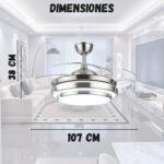 Diseño increíble: Da un estilo de modernidad y elegancia a tus interiores con nuestro abanico de techo plata El diseño de este ventilador de techo con lampara led tiene la característica única de contar retractiles dando una imagen moderna e innovadora.