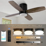 Regulable y 3 colores disponibles: el ventilador de techo pequeño negro inteligente con control remoto de luces soporta 3 colores (cálido, fresco, neutro), y el brillo se puede atenuar del 100% al 10% utilizando la tecnología de atenuación continua. Así que puedes configurar fácilmente el brillo para cada temperatura de color. Motor CC reversible