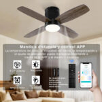 Dos métodos de control: e ventilador de techo empotrado con kit de luz LED puede ser operado tanto por control remotoo por aplicación, y el pequeño ventilador de techo tiene u función de memoria, que mantendrá el brillo del último uso cuando la luz e encendida (Nota: solo funcio si se apaga/enciende por el control remoto o la aplicación, no funciona interruptor de pared)