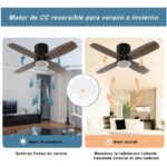 Silencioso pero potente: este ventilador de techo de motor CC de 6 velocidades de 38 pulgadas es silencioso y ahorra energía, mientras que las aspas del ventilador de ángulo inclinado pueden mover una gran cantidad de aire de manera más eficaz. Y la función de luz nocturna y sincronización es muy adecuada para su uso mientras duermes.