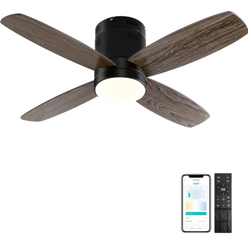 Ohniyou Ventilador de Techo con Luces, 38» Ventiladores de Techo Pequeños de Montaje Empotrado, Control Remoto y APP, Luz Regulable, 6 Velocidades, Reversible, para Patio Cocina Dormitorio(Negro)