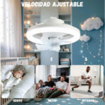 Montaje fácil: Instalar este abanico de techo es tan sencillo como cambiar un foco por su entrada E27 Para facilitar la colocación la lampara ventilador cuenta con instructivo al igual que con toda la tornillería para colocarlo.