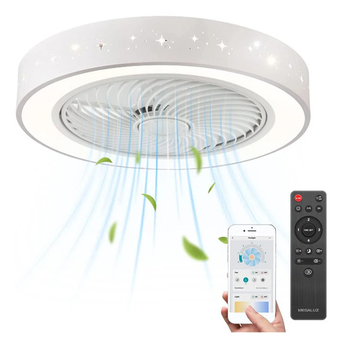 Megaluz WF60005 Ventilador de techo con luz led y control remoto y APP, 12 pulgadas, luz blanca fría, neutra y cálida, aspas internas, Abanico de techo 3 velocidades y motor silencioso (Blanco).