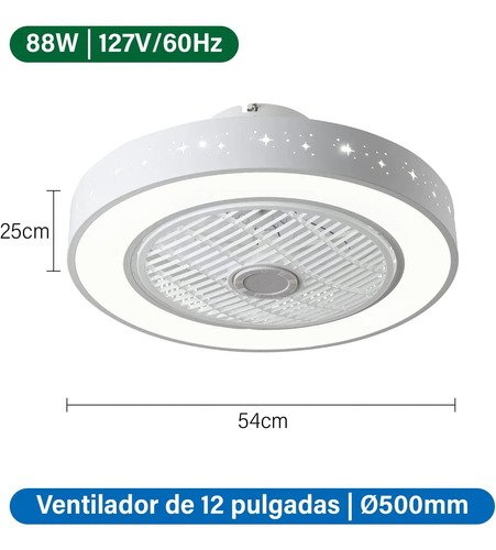 Diseño increíble: Da un estilo de modernidad y elegancia a tus interiores con nuestro abanico de techo blanco El diseño de este ventilador de techo con lampara led tiene la característica única de contar con aspas Internas dando una imagen minimalista y práctica