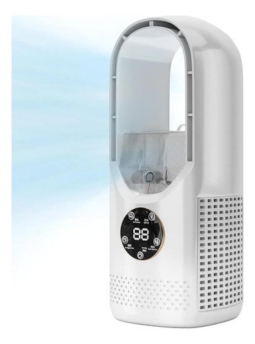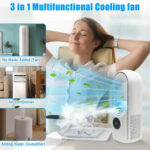 Mini Aire Acondicionado 3 en 1Este ventilador seguro sin hojas puede usarse como ventilador, mini aire acondicionado y humidificador. El ventilador de aire acondicionado portatil sin hojas integra aire acondicionado, refrigeración y humidificación.Está equipado con un tanque de agua de gran capacidad de 100 ML,que se puede agregar fácilmente agua con solo levantar la tapa para facilitar la — función combina una neblina de agua fría con una brisa potente para brindar una experiencia refrescante, brindándole una sensación de frescor en climas cálidos y reponiendo la hidratación de su piel.