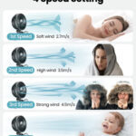Batería de 4000 mAh y carga rápida de 4.5 h: Este ventilador portátil tiene una gran capacidad de celda de 4000 mAh El ventilador recargable dura de 3 a 12 horas dependiendo de las 4 velocidades, y se carga completamente en 4.5 h El ventilador pequeño se carga mediante un puerto USB tipo C de calidad