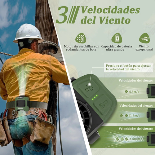 Amplia variedad de usos La carcasa de este ventilador de cintura está hecha de materiales duraderos como plástico y silicona, lo que garantiza un agarre firme y minimiza el riesgo de caídas accidentales, siendo ideal para su uso prolongado al aire libre. Este ventilador portátil es ideal para una gran variedad de actividades como trabajo, jardinería, agricultura, senderismo, pesca, campismo, ciclismo, viajes o montañismo, proporcionando un alivio fresco que te hará sentir cómodo durante todas tus aventuras.