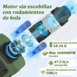 Ventilador portátil con motor sin escobillas de última generación Equipado con un motor industrial sin escobillas, asegura una vida útil prolongada y seguridad, y ofrece 3 niveles de velocidad: baja, media y alta. Con su motor de alto rendimiento, puede generar un flujo de aire extremadamente fuerte a una velocidad de hasta 16,000 RPM, mientras que mantiene un nivel de ruido inferior a 50 dB en su configuración más baja.