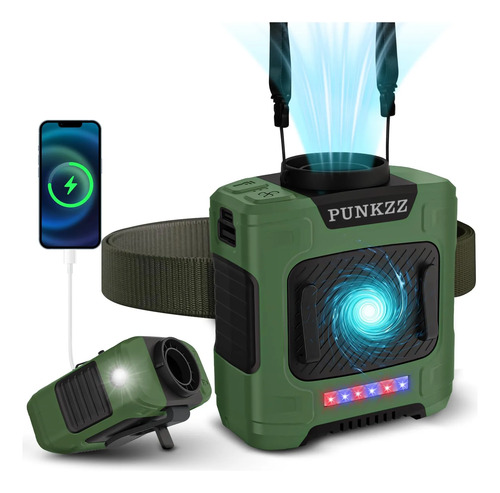 Ventilador Personal Portátil Potente 7 en 1, 3 Velocidades y 16000Rpm, Ventilador de Cintura, Cuello y Mano, 10000mAh Recargable, Mini Ventilador, Trabajo y Uso Exterior (Verde Militar)