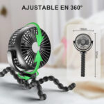 GuDoQi Ventilador Portátil, Cochecito Ventilador de Mano Recargable, Hasta 35 Horas de Tiempo de Ejecución, 3 Velocidades, Ajustable 360 Grados, Soporte Flexible, para Cochecito, Oficina, Exteriores