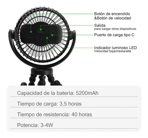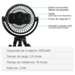 Tiempo de Uso Extra Largo: Este ventilador de mano adopta la interfaz tipo C para la carga. Batería incorporada de 5200 mAh de alta capacidad, que permite hasta 35 horas de uso continuo. Durable y larga vida útil.