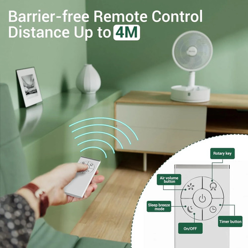 Quntis Ventilador Portatil Recargable con Control Remoto, Ventilador Plegable Silencioso, 4 Velocidades, Altura Ajustable (98CM Máx), Fan de Escritorio USB para Hogar Oficina Camping
