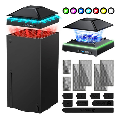 Upgrade RGB Cooling Fan for Xbox Series X with Dust Cover Filter, Colorful LED Light Cooler System Accessories with Low Noise 3 Levels Adjustable Speed Fan, Extra 2 USB Port for Xbox Series X Console