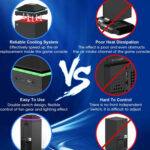 Bajo ruido y efecto de luz colorido: el sonido del ventilador de refrigeración que funciona con menos ruido no afectará a tus juegos de juego. Los efectos de iluminación cambiables del ventilador de refrigeración también pueden crear una sensación de atmósfera para juegos de Xbox Series X, con interruptor táctil, que se puede cambiar o encendido/apagado en cualquier momento