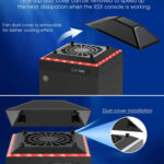 Ventilador de refrigeración Upgarde para consola Xbox Series X: actualizado el diseño desmontable de la cubierta antipolvo superior. Se puede quitar en cualquier momento para aumentar la ventilación y mejorar la disipación del calor. La parte superior es el lado de escape, por lo que instalar un ventilador en la parte superior puede sacar más aire caliente, lo que mejora la eficiencia de refrigeración para la consola Xbox Series X y evita que la consola se sobrecaliente